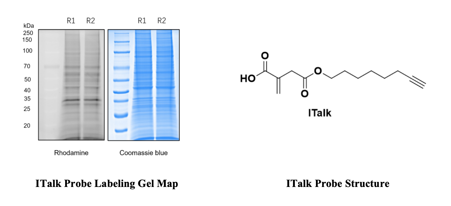 Die mit ITalk-Sonden auf lebender Zellebene metabolisch markierten Zellen wurden lysiert, gefolgt von einer Klickreaktion, Anreicherung, Enzymverdauung und anderen Schritten, um den spezifischen Ort der Itaconsäure-Ansäuerung zu bestimmen.